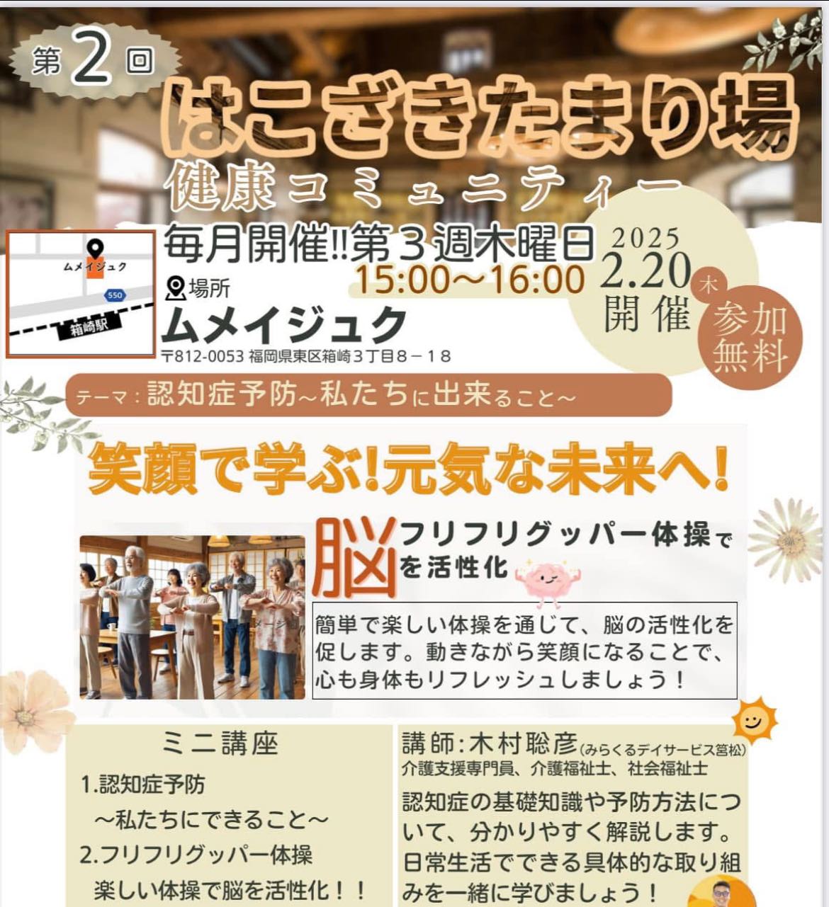 #ムメイジュク#はこざきたまり場#健康コミュニティー#箱崎商店連合会#箱崎#認知症#地域共生
