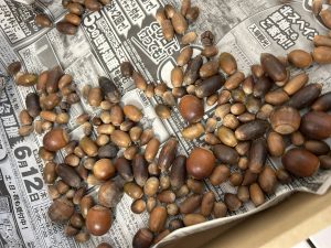先日の校外学習で拾ってきたどんぐりでコマを作り、みんなで回して楽しみました^o^