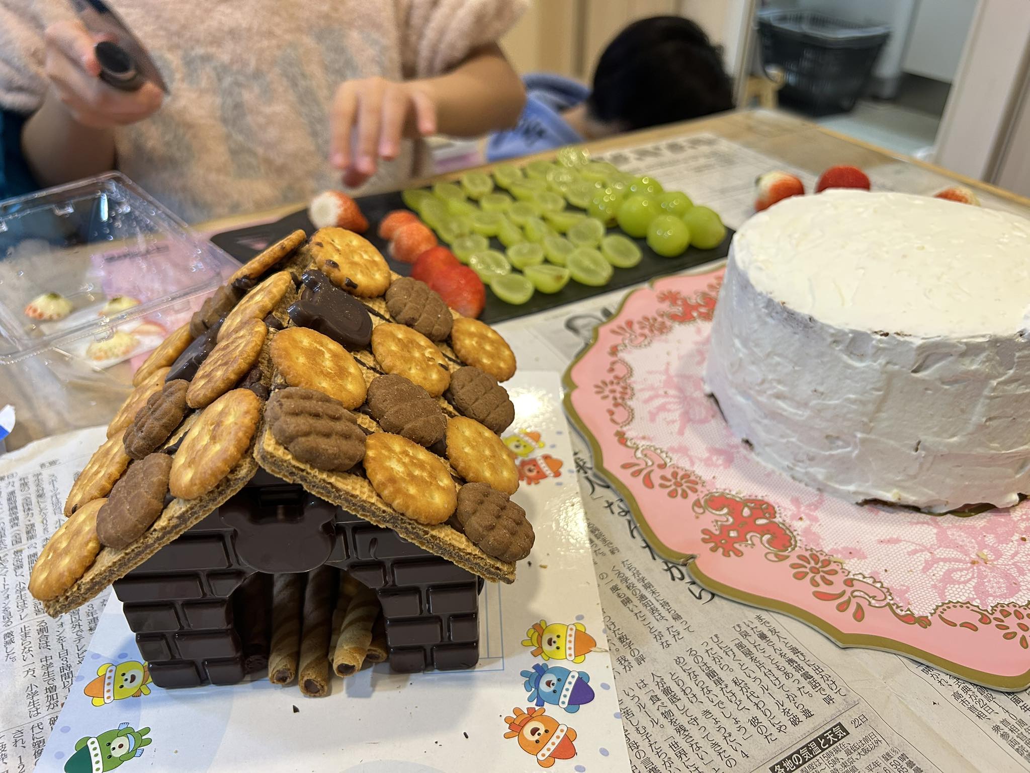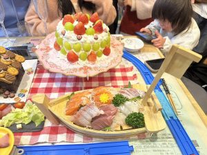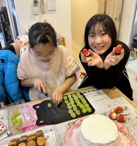 生クリームも果物も、とにかくいっぱい盛り付けたい子ども達(゚o゚;;
