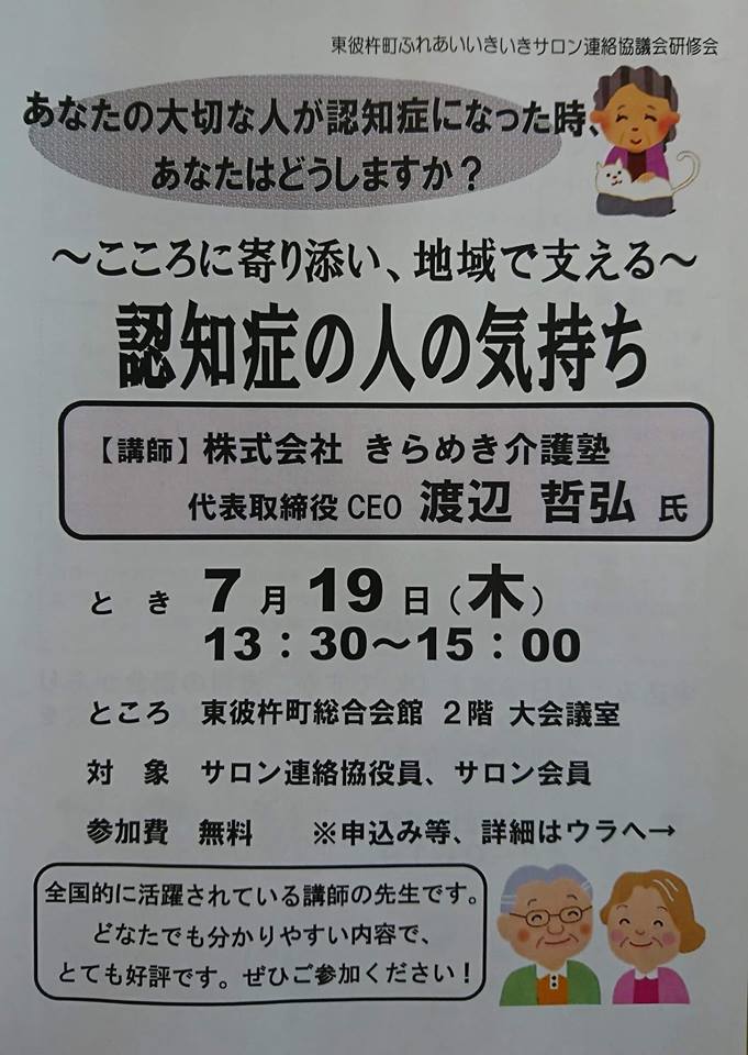 夜は【東そのぎ在宅ケアセミナー】様よりご依頼いただき、認知症研修をしました。