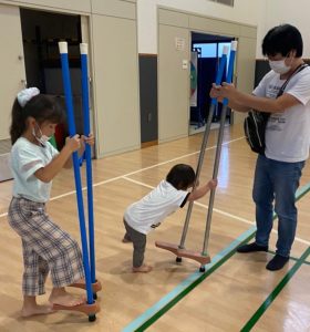 竹馬で遊んでいるお姉ちゃんを不思議そうに見ていたシュンくん…