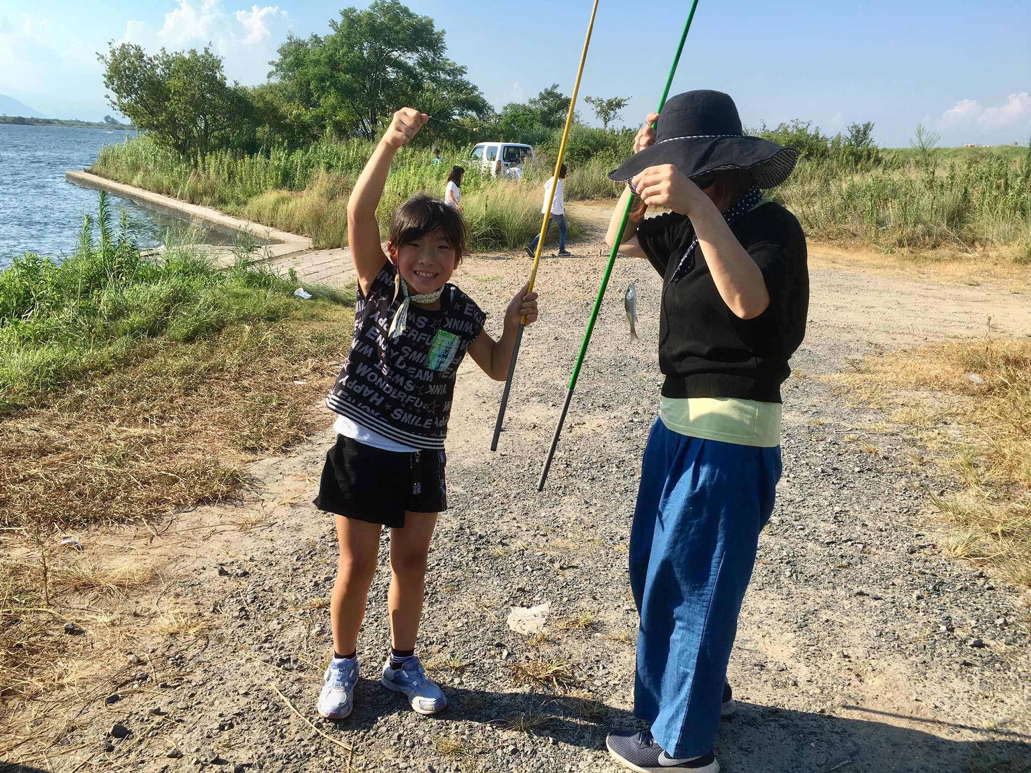 実家に帰省 今日も終わったぁ(^。^) 名古屋の実家に帰省〜 「魚釣りに行きたい!」と娘のリクエストで木曽川に。 「ほら釣れた!簡単や、でもちっちゃ(笑)」 と小さなハゼに遊んでもらい、娘達、笑顔いっぱいでした(o^^o) 夜はお庭でバーベキュー&花火、月一回の親孝行… おじいちゃん、おばあちゃんも楽しそうでよかったです!