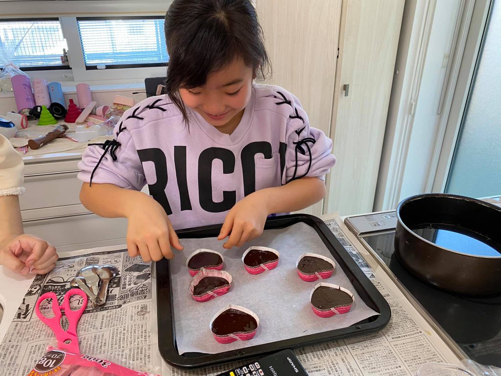 バレンタインデー♬ 今日も終わったぁ(^。^) 2月14日、バレンタインデー♬ 今年も昨日から大量のチョコ作り! 「無塩バターが足りない!パパ、ダッシュで買ってきて!」 とお店を飛び回り(^^;; 今日は今日で 「一年生の友達、15人集まるから、パパはリコ達が変な人に連れていかれないように見とく係やしな!」 と引率に。 気がつけば鬼ごっこの鬼役でさんざん走らされ(^^;; 毎年、子ども達にとってはすっごく楽しみなバレンタインデー! 親にとっては超ハードな一大イベントです\(//∇//)\笑