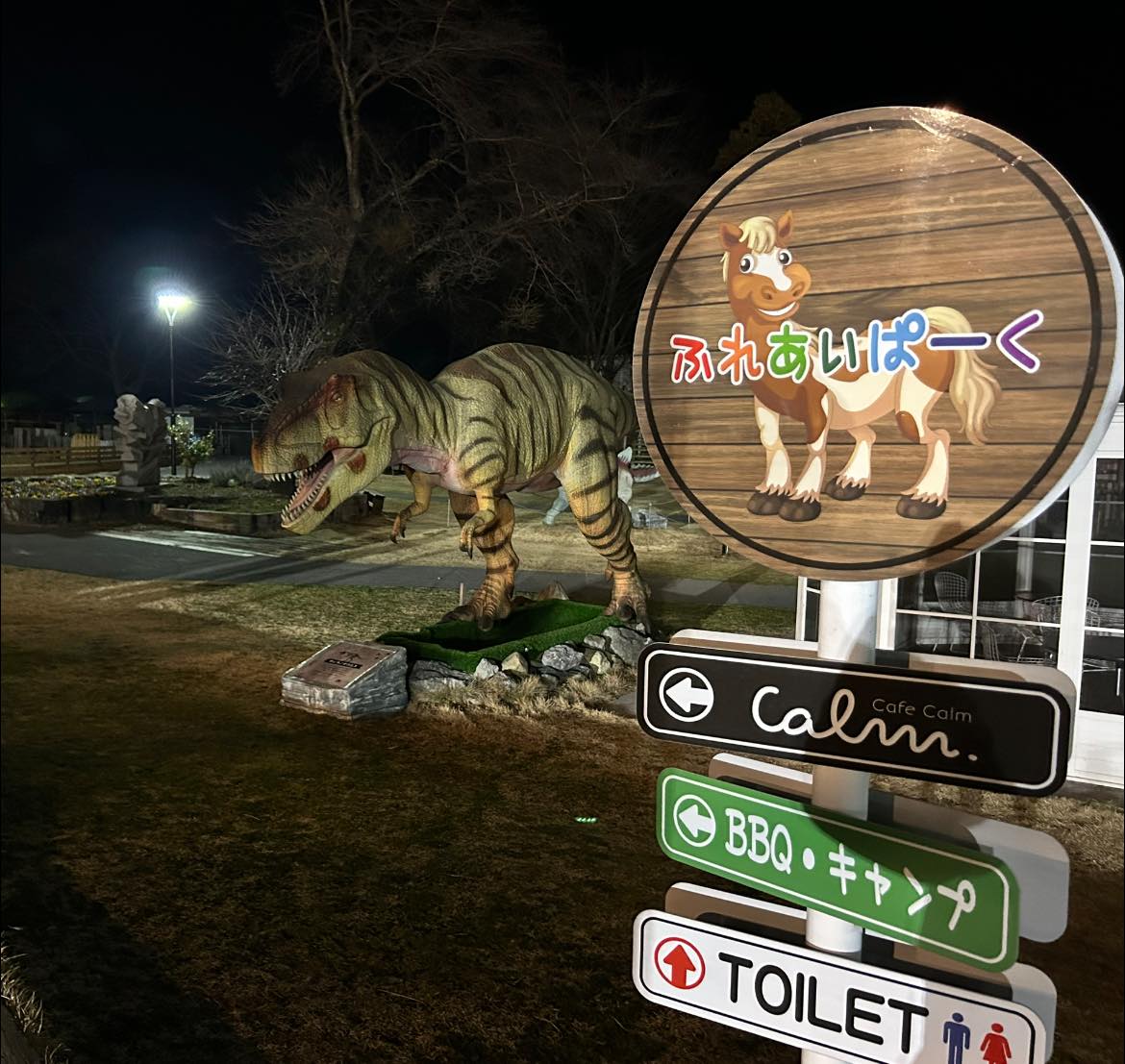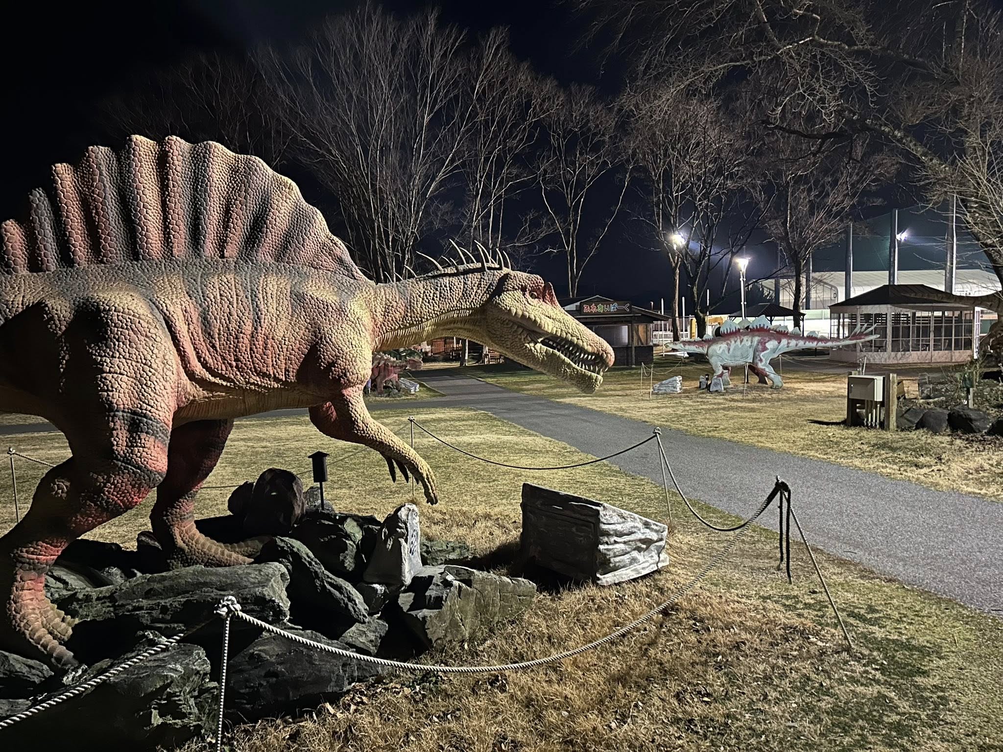 週末は家族でキャンプに♬ 今日も終わったぁ(^。^) 「パパ、たまには土日に家族でどっか行こうよ!」とせがまれ、週末は家族でキャンプに♬ ここのキャンプ場… 昼間は動物と触れ合えたり、恐竜がいっぱいいる公園として子ども達に大人気! 夜は公園で10組くらい泊まれるんですが、三連休にも関わらず泊まりは我が家だけ… 貸し切りでした♬ スタッフの方のご好意なのか、夜になっても恐竜のセンサーはスイッチが入ったままで、夜中トイレに行く途中も、何回も恐竜に吠えられるといった貴重な体験ができました\(//∇//)\笑